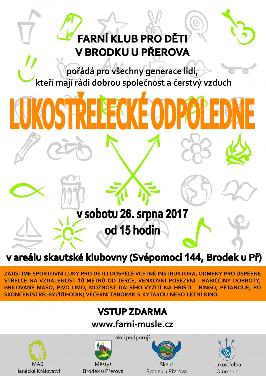 Pozvánka na Lukostřelecké odpoledne v Brodku u Přerova. Akce se uskuteční v sobotu 26. srpna od 15 hod. Více informací na plakátku.