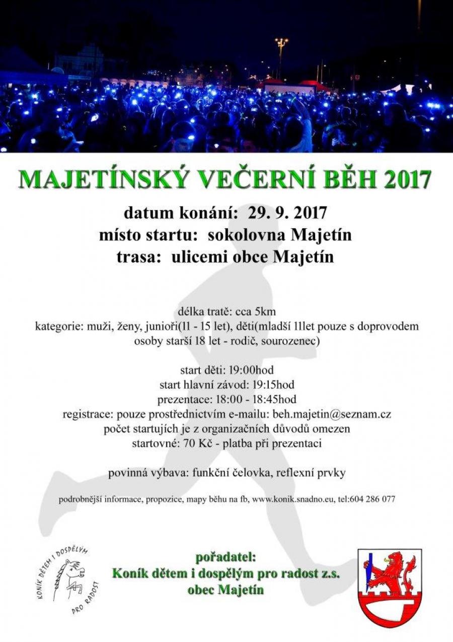 Pozvánka do Majetína na večerní běh, který se uskuteční v pátek 29. září. Více informací na plakátku.