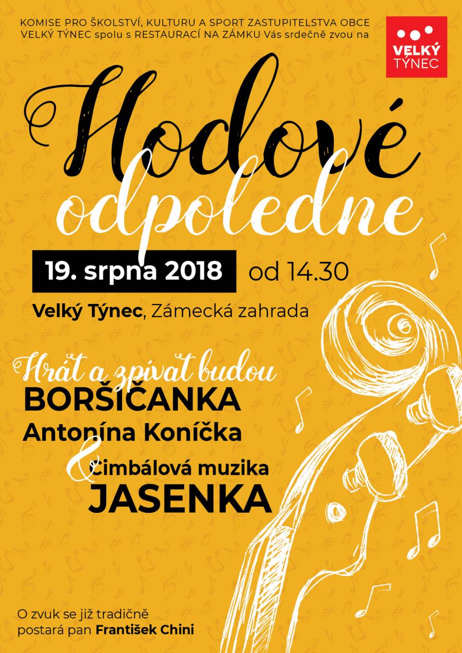 Pozvánka do Velkého Týnce na Hodové odpoledne, které se uskuteční v neděli 19. srpna od 14:30 hod. Více informací na plakátku.