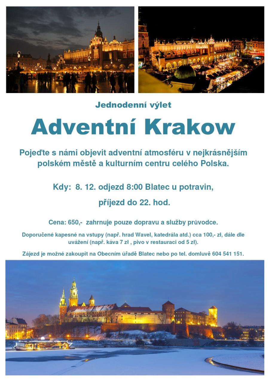 V předstihu informujeme o nabídce zájezdu do polského Krakowa, který pořádá SRPŠ při ZŠ a MŠ Blatec. Zájezd se uskuteční v sobotu 8. prosince 2018. Podrobnosti najdete ZDE.