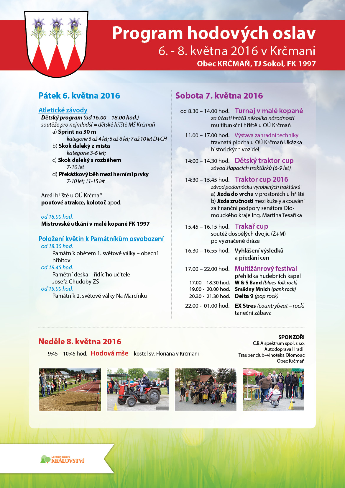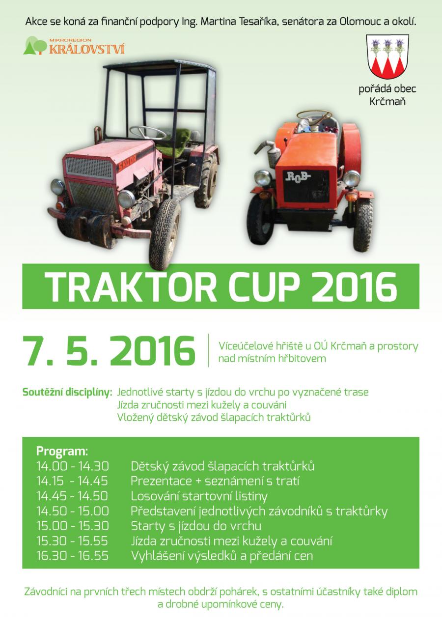Srdečně Vás zveme na Traktor cup 2016, který se uskuteční v sobotu 7. května na hřišti u OÚ v Krčmani. Více informací o akci včetně programu najdete na plakátku.