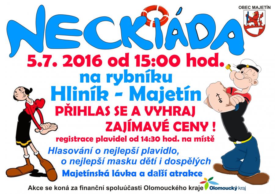Zveme Vás do Majetína na Neckiádu, která se uskuteční v úterý 5. července od 15:00 hodin. Více informací na plakátku.