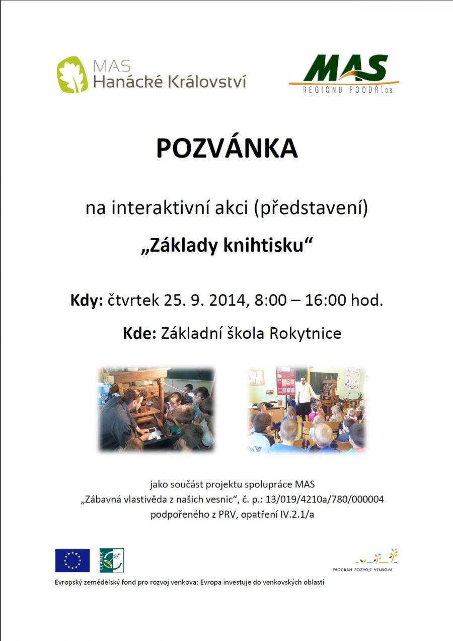 Zveme Vás do Rokytnice na interaktivní akci projektu Zábavná vlastivěda z našich vesnic, která se uskuteční ve čtvrtek 25. září.